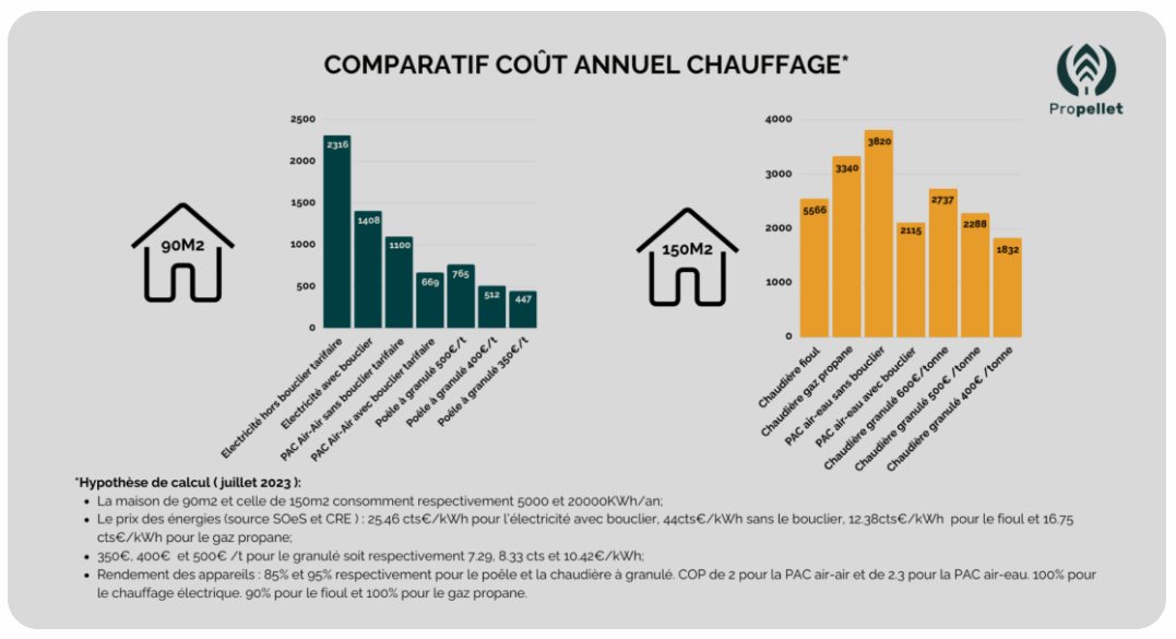 Selon Propellet, le granulé de bois demeure l’énergie de chauffage la plus économique en 2025, offrant un coût annuel inférieur à celui de l’électricité, du gaz naturel, du fioul ou du propane pour une maison de 90 m².